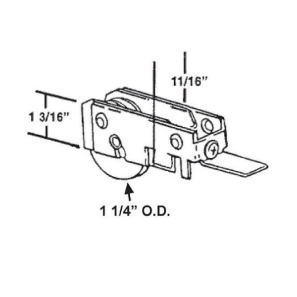 This door roller assembly is used by Air Master, Lausell and other manufacturers. Housing is made from stamped steel for durability. It features a 1-1/4 in. steel wheel.
