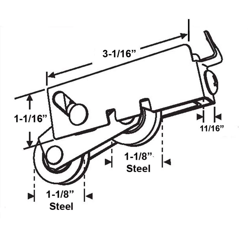 This sliding patio door tandem roller assembly is made of steel. It features tandem 1-1/8 in. ball bearing wheels for long life. Stamped steel housing is adjustable.