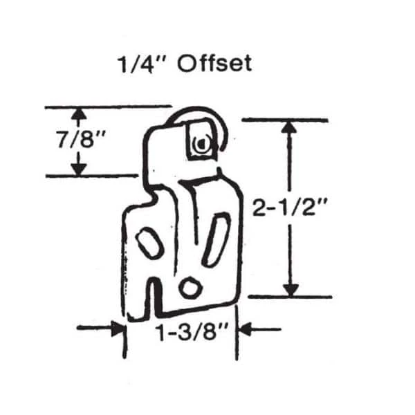 The Barton Kramer 1/4 in. Milled Steel and Nylon Offset Closet Door Hangers (2-Pack) feature 1/4 in. offset brackets. The included nylon wheels each have a 7/8 in. Dia. with oval-shaped edges. These bypass closet door hangers are compatible with Acme and Stanley brands.