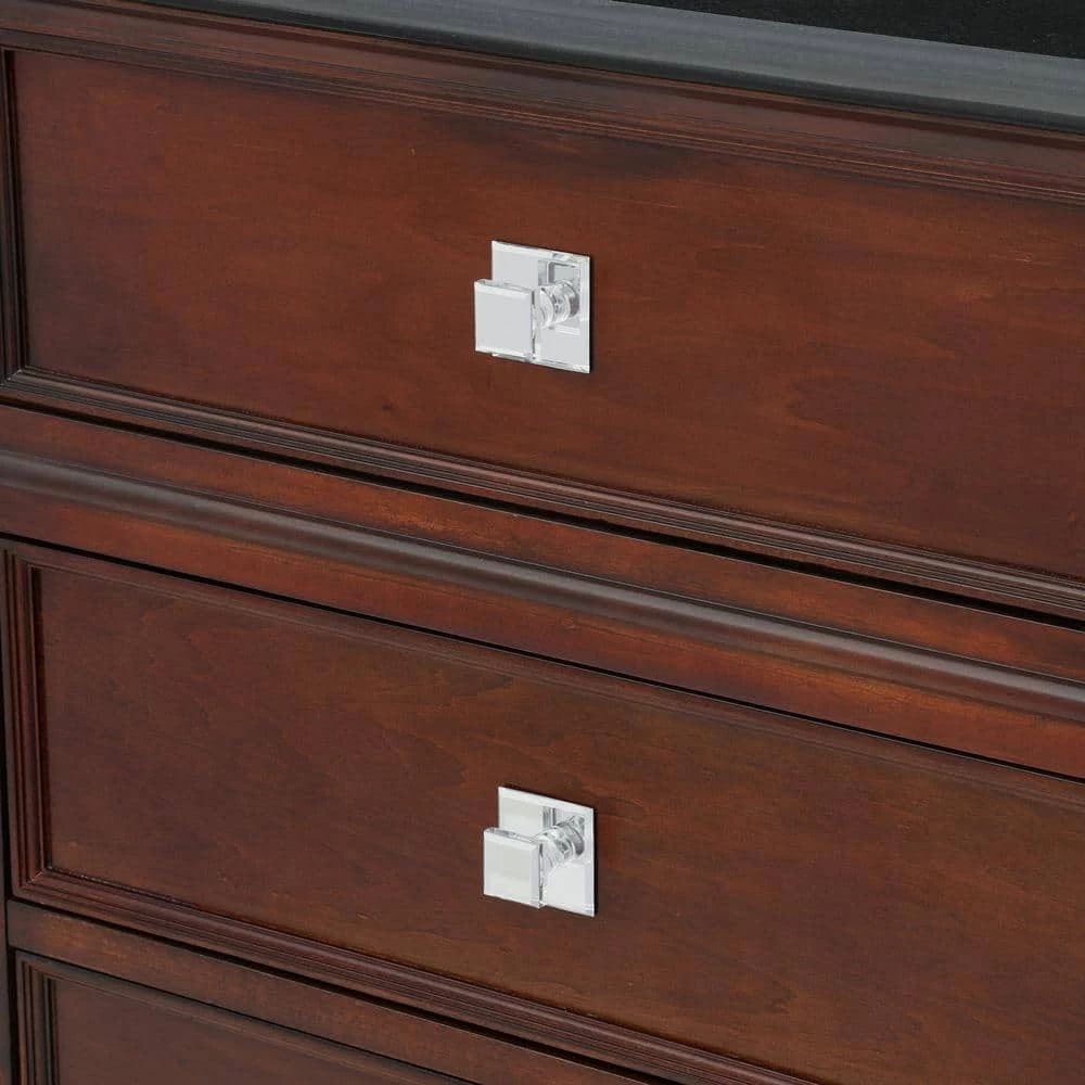 This self stick mirror acrylic pull knob looks great on all types of mirror doors. Can be used on sliding, swinging and bi-fold doors and medicine cabinets. Self adhesive mounting for easy installation.