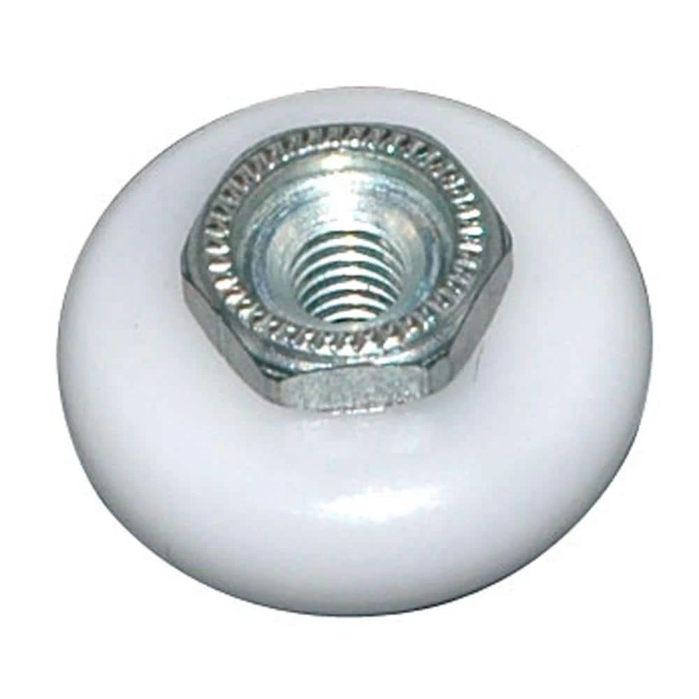This rounded edged shower door roller is constructed from nylon. It features a threaded hex hub. It comes complete with fasteners for a quick and easy installation.