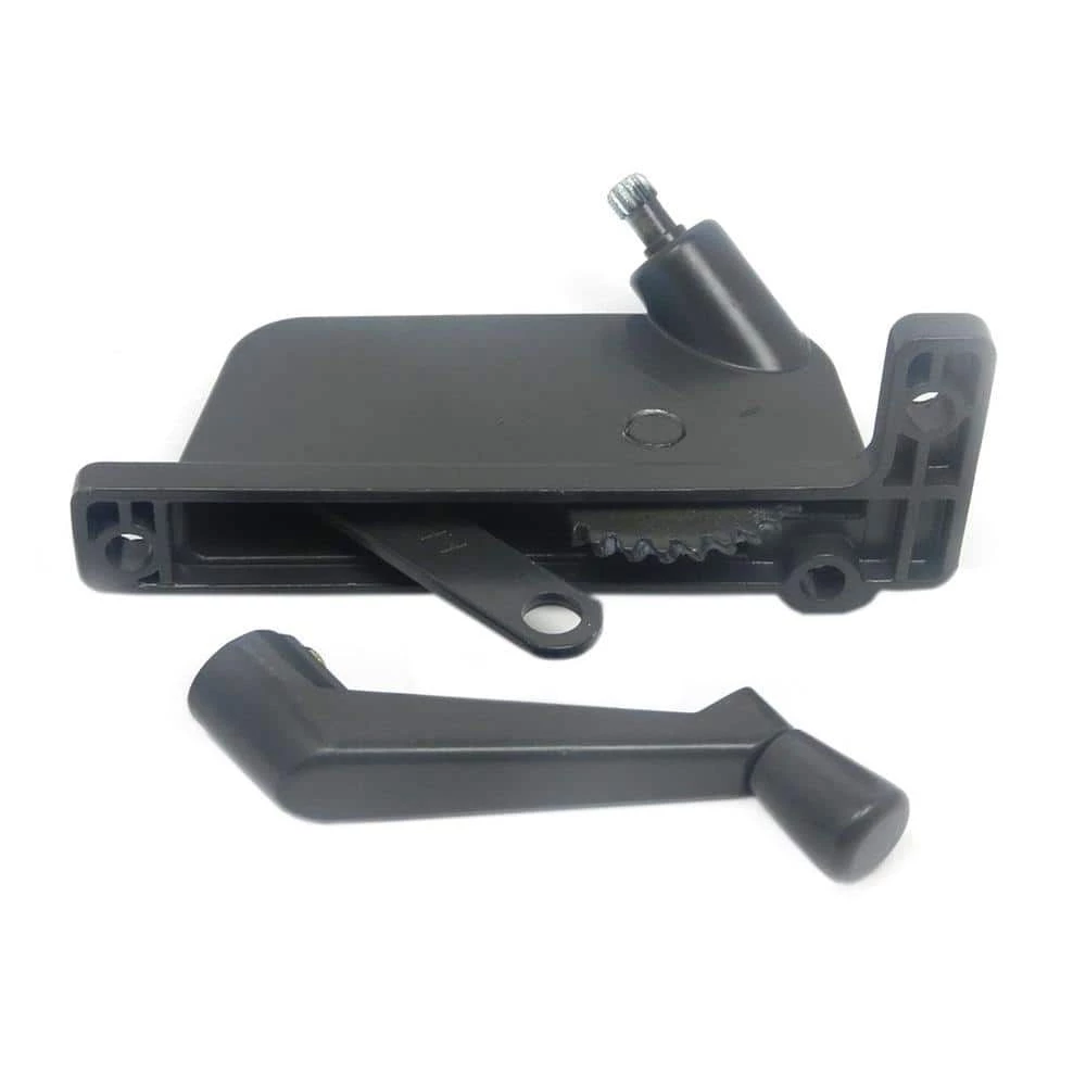 This right-hand awning window operator is used by Crown and Season Shield Windows. Finished in bronze color to match the window frames. Aluminum and die cast construction.