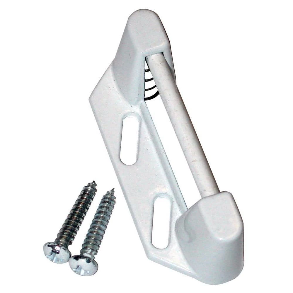 This high profile screen door striker has a prominent design and resilient spring action to catch a screen door easily and securely. This striker replaces styles from Ideal Security or similar sets. Finished in white color.