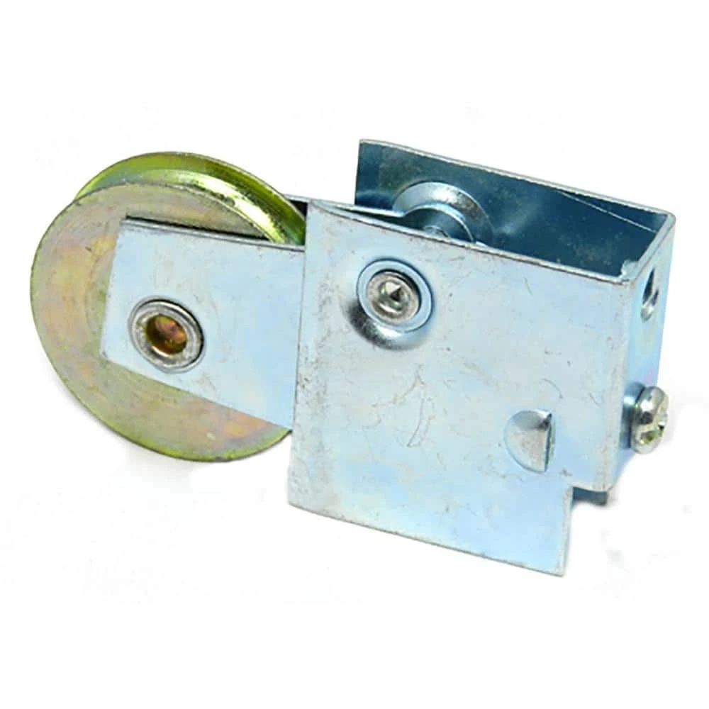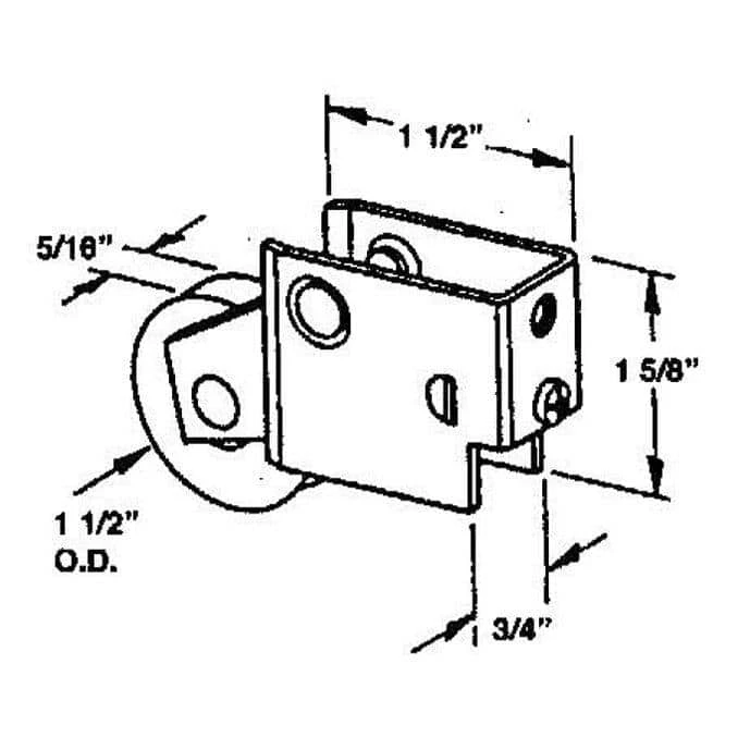 This sliding glass door roller assembly is made of stamped steel. It features a1-1/2 in. ball bearing steel wheel for smooth operation. Used by Keller Industries and other manufacturers.