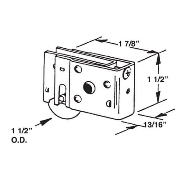 This sliding glass door roller assembly has a stamped adjustable steel housing. It features a 1-1/2 in. ball bearing steel wheel for smooth operation. Fits doors manufactured by Binnings Pan American and other companies.
