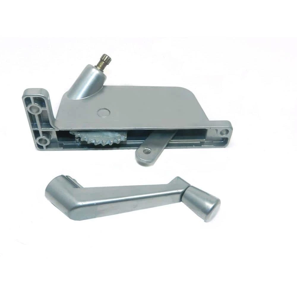 This left-hand awning window operator is made of aluminum and zinc die cast. Finished in silver color to match the window frames. It fits awning-type windows manufactured by Security Windows.