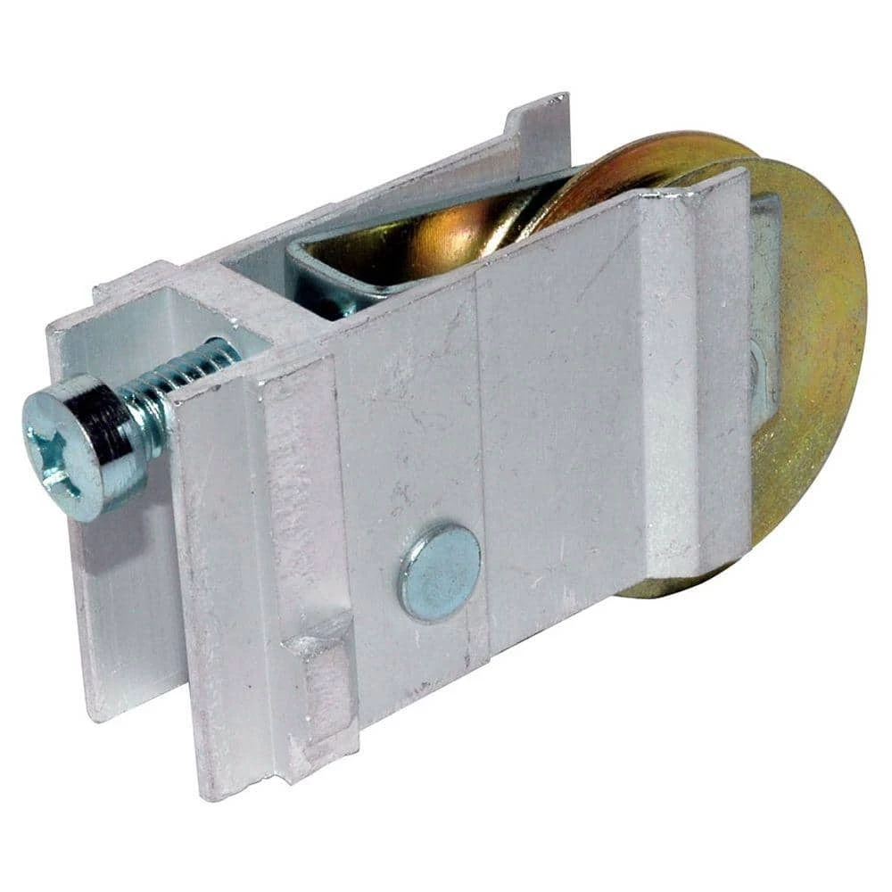 The Sliding Glass Door Roller Assembly for Binning Pan American Sliding Glass Doors replaces door rollers used on Binning Pan American sliding glass doors. The assembly features extruded aluminum housing and a 1-1/2 in. diameter steel wheel.