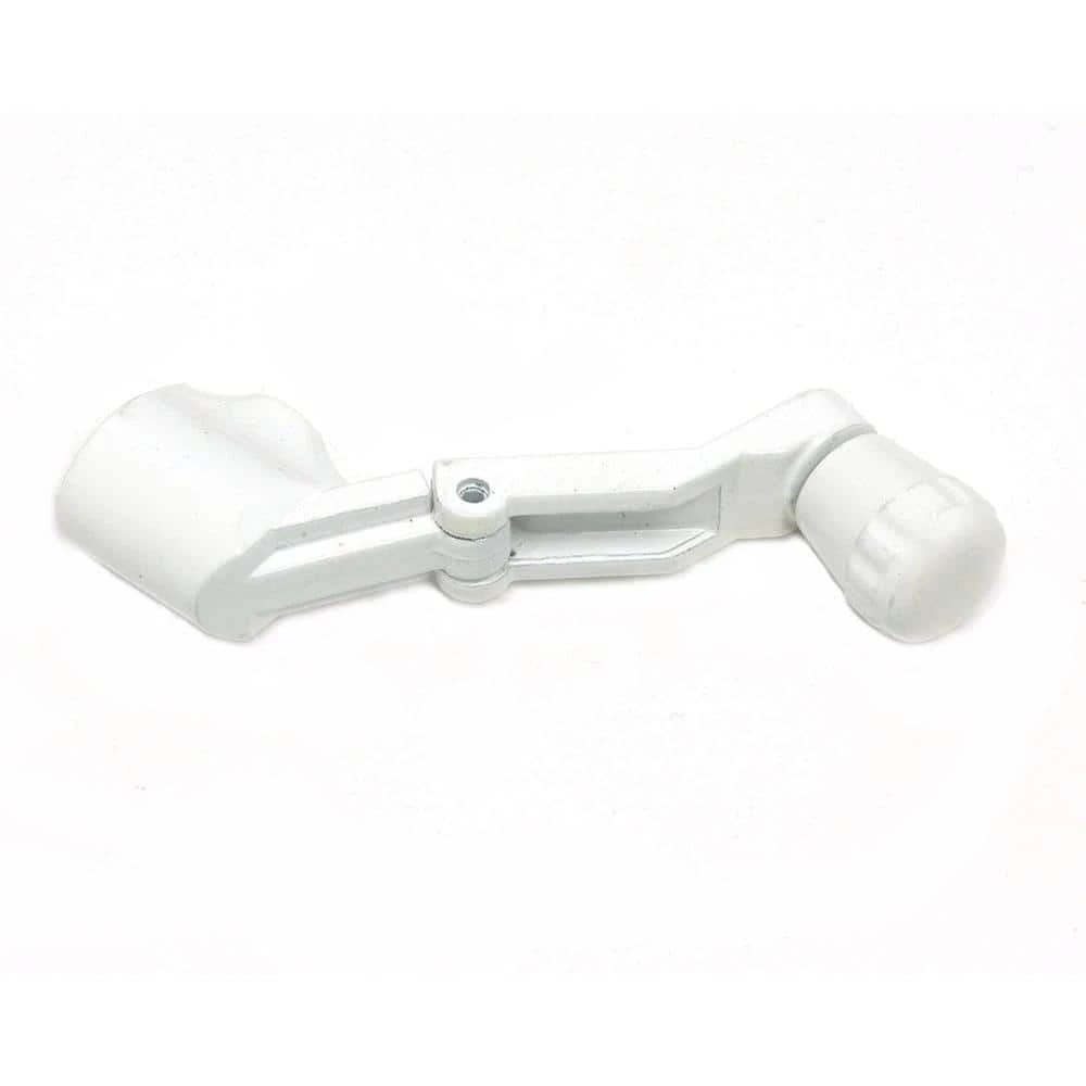 This fold-away handle can be used for casement, awning and jalousie type window operators. Universal, self-adjusting insert allows for mounting on most operator gears. Folding design eliminates interference with window blinds.