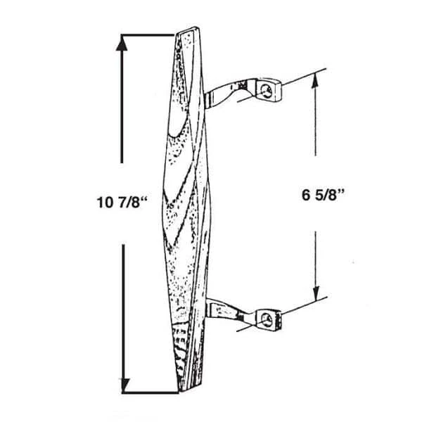 The Barton Kramer Wood Sliding Glass Door Handle is designed to accommodate most sliding glass door lock sets. It features a C-style, canoe-shaped wooden handle and a 6-5/8 in. screw hole spacing. The brackets are constructed from metal for endurance and are plated in chrome.