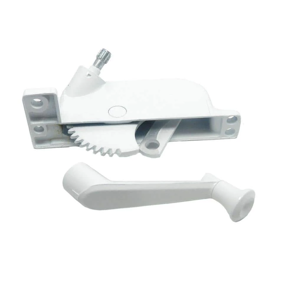 This left-hand awning window operator is used by Yale Ogron Awning Windows. Finished in white color to match the window frames. Aluminum and die cast construction for long lasting operation.