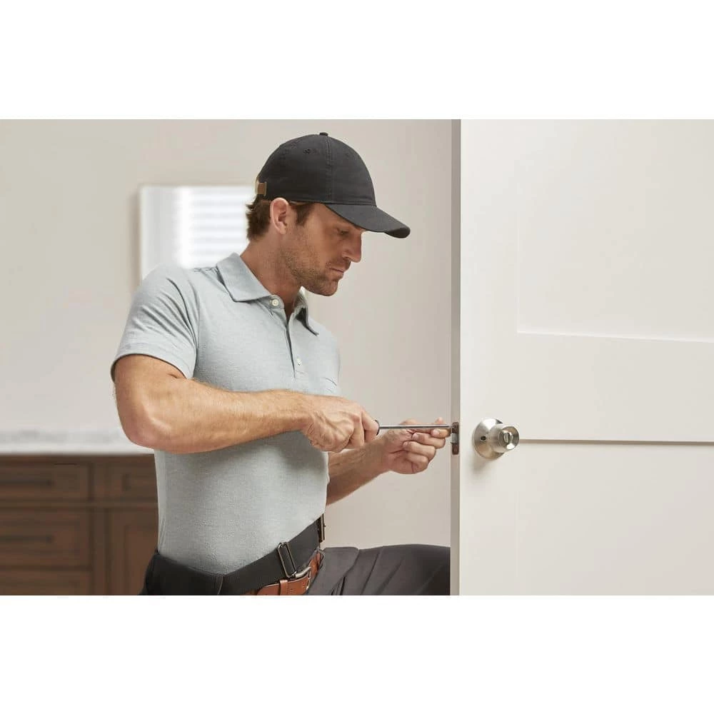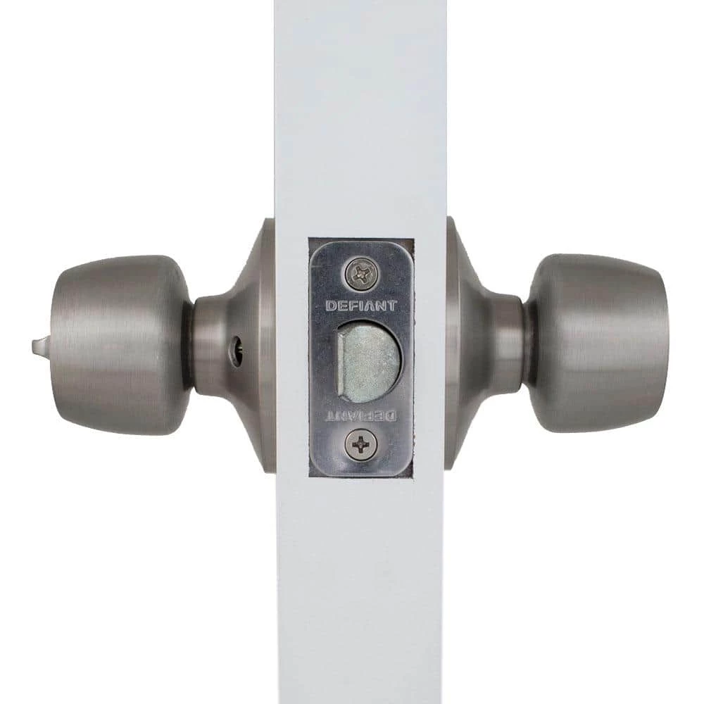 Affordably outfit interior doors with this lockable knob set from Defiant. The Brandywine Privacy knob easily mounts to doors 1-3/8 in. to 1-3/4 in. thick with the included hardware. A new design feature is the 70 mm rose plate that easily covers paint rings left from previous door hardware installations. Perfect for bedroom and bathroom doors beyond which privacy is sometimes desired. Provided with this set is an adjustable backset and interchangeable faceplates for drive-in and traditional installations. This sturdy knob nicely coordinates with other fixtures in your home for a cohesive look. A lifetime warranty ensures that this device will withstand frequent use.