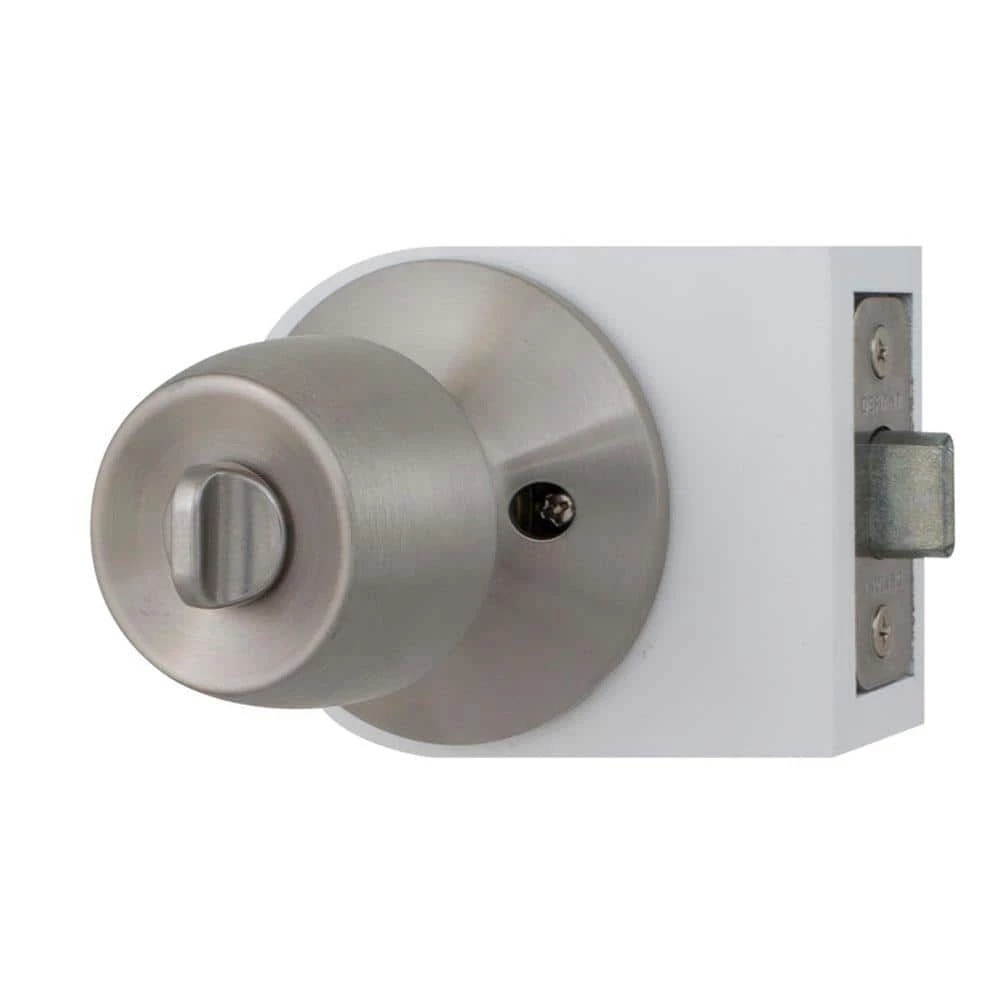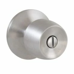 - Locks from the inside with a turn button and unlocks from the outside with a coin or flat piece of metal
