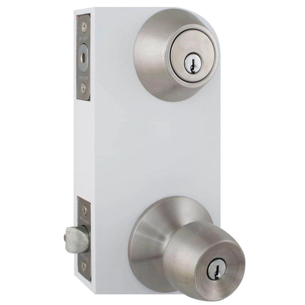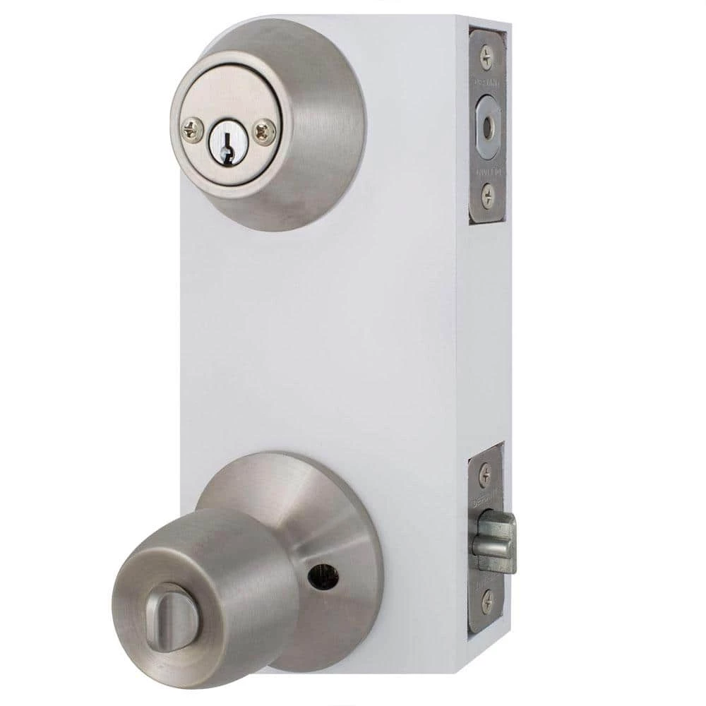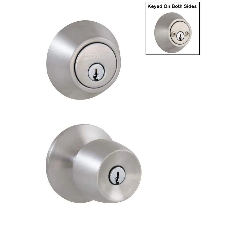 Guard against intrusions and keep your home and family protected with the Brandywine Entry Knob and Double Cylinder Deadbolt Combo Pack from Defiant. This bundle includes 4-keys that lock/unlock both the entry knob and deadbolt, which are built to withstand drilling, sawing, picking and prying. The sturdy lockset affixes easily with the included fasteners, compatible with most residential exterior doors and requiring only a screwdriver to install. Rest easier at night knowing your entryway is fortified with these ANSI Grade 3-certified devices.