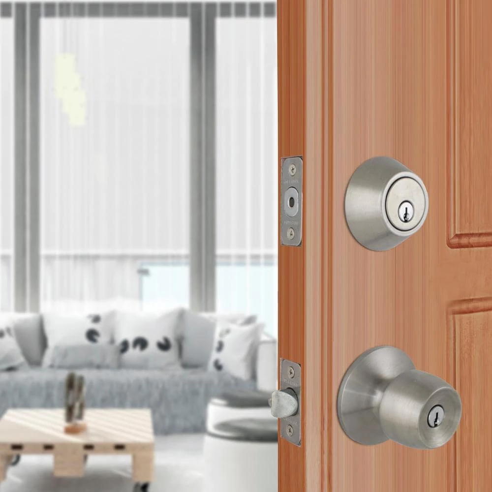 - Includes 1 entry knob, 1 double cylinder deadbolt, 4-keys and mounting hardware