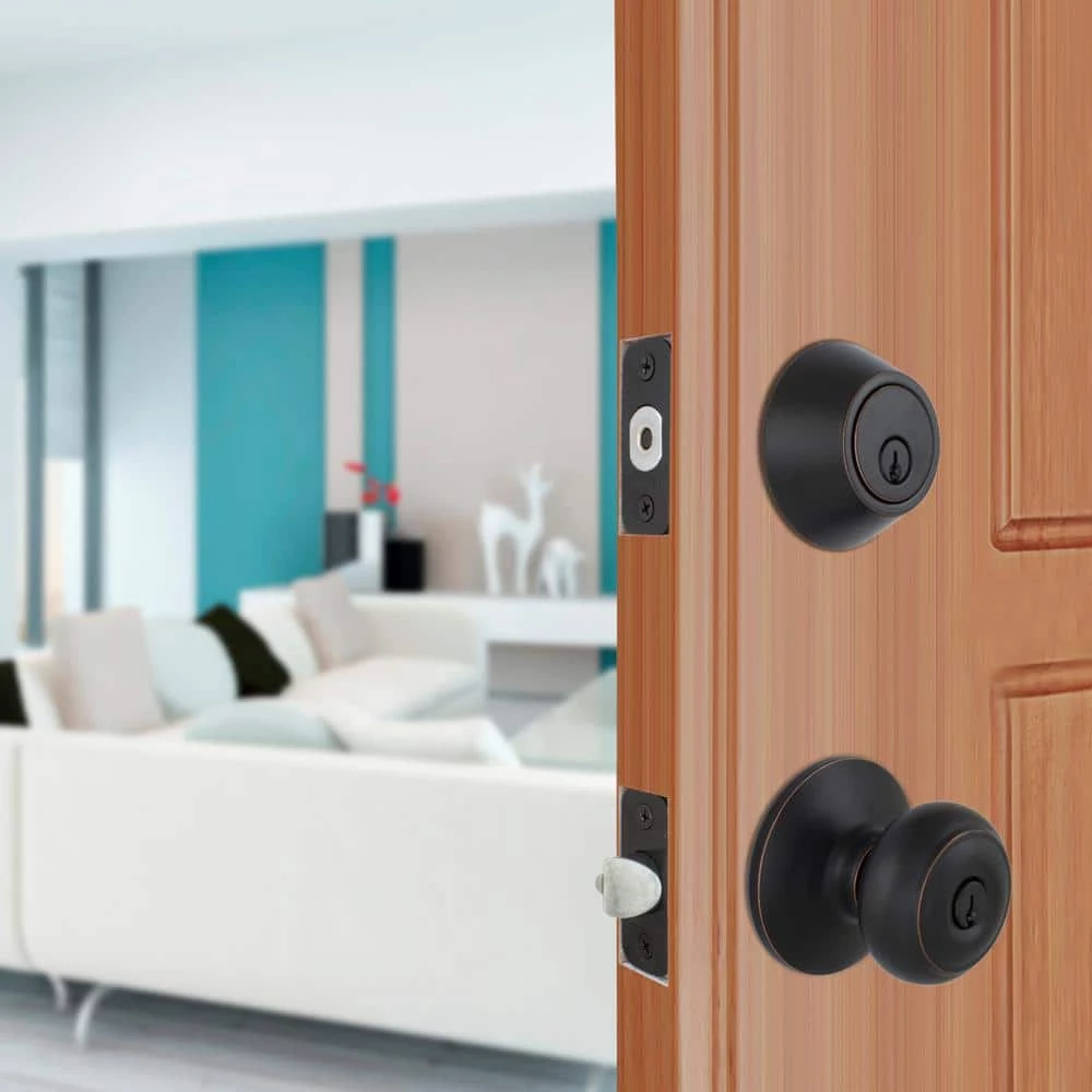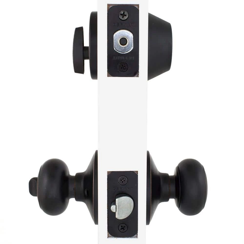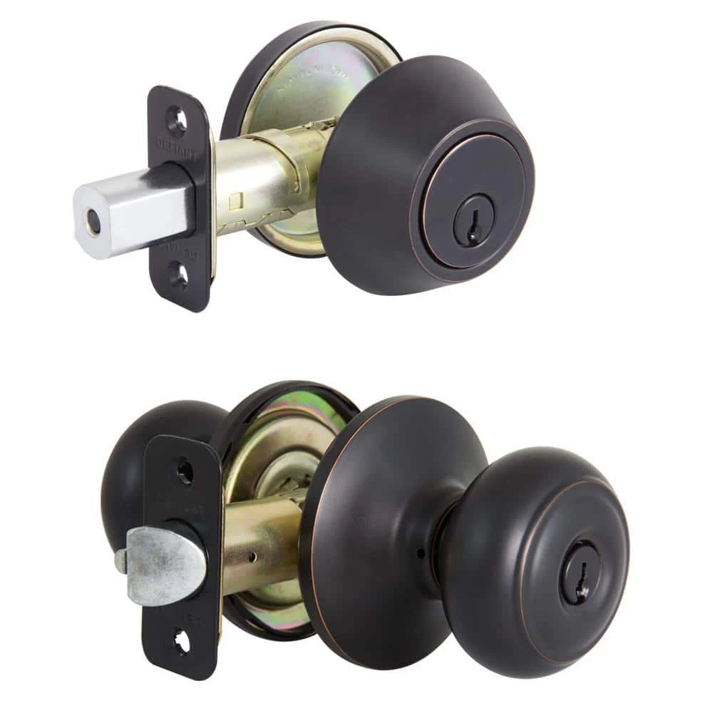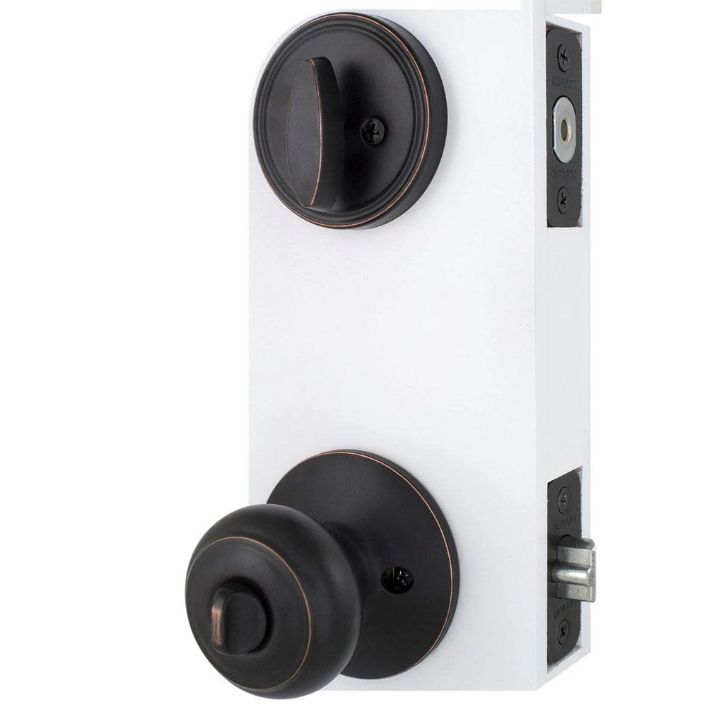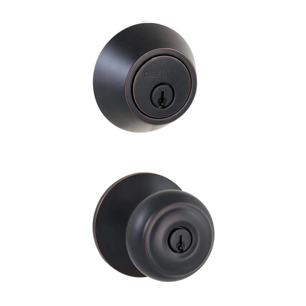 - Includes 1 entry knob, 1 single cylinder deadbolt, 4-keys and mounting hardware