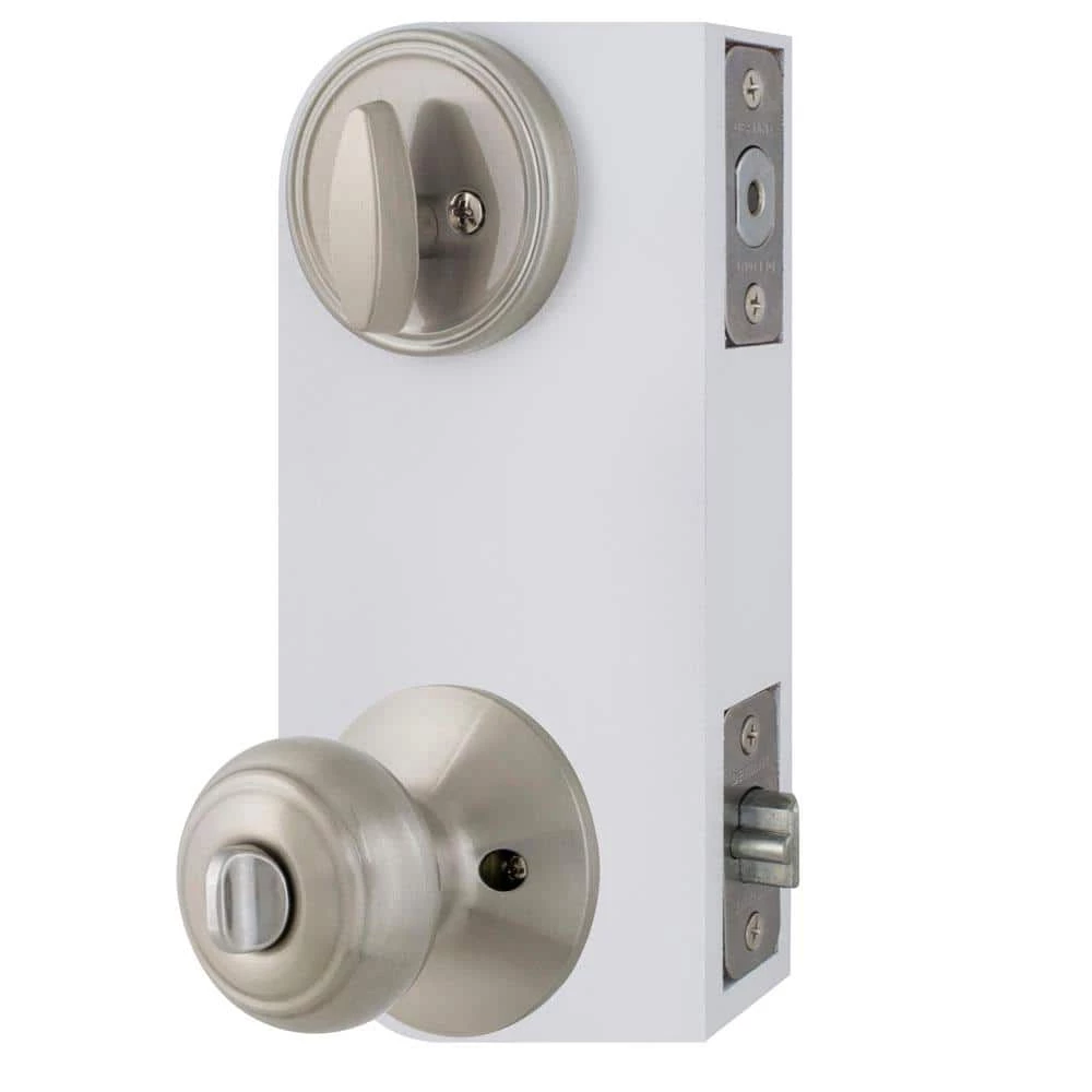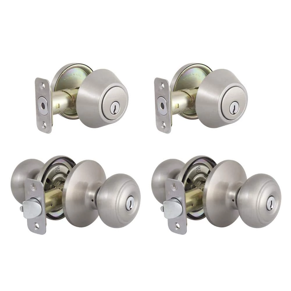 - Includes 2-entry knob, 2-single cylinder deadbolt, 4-keys and mounting hardware