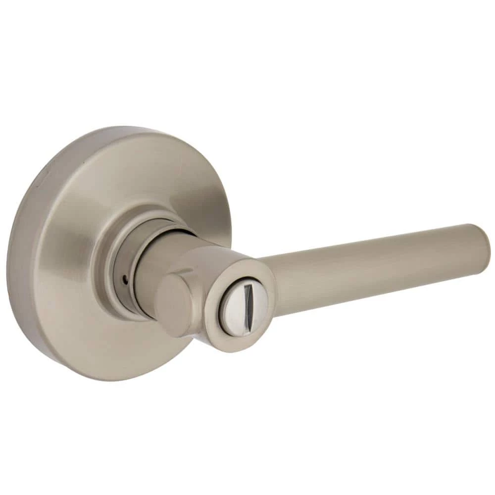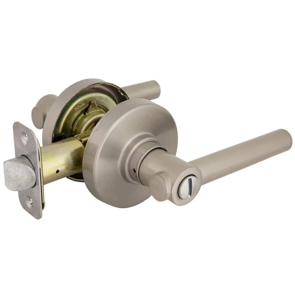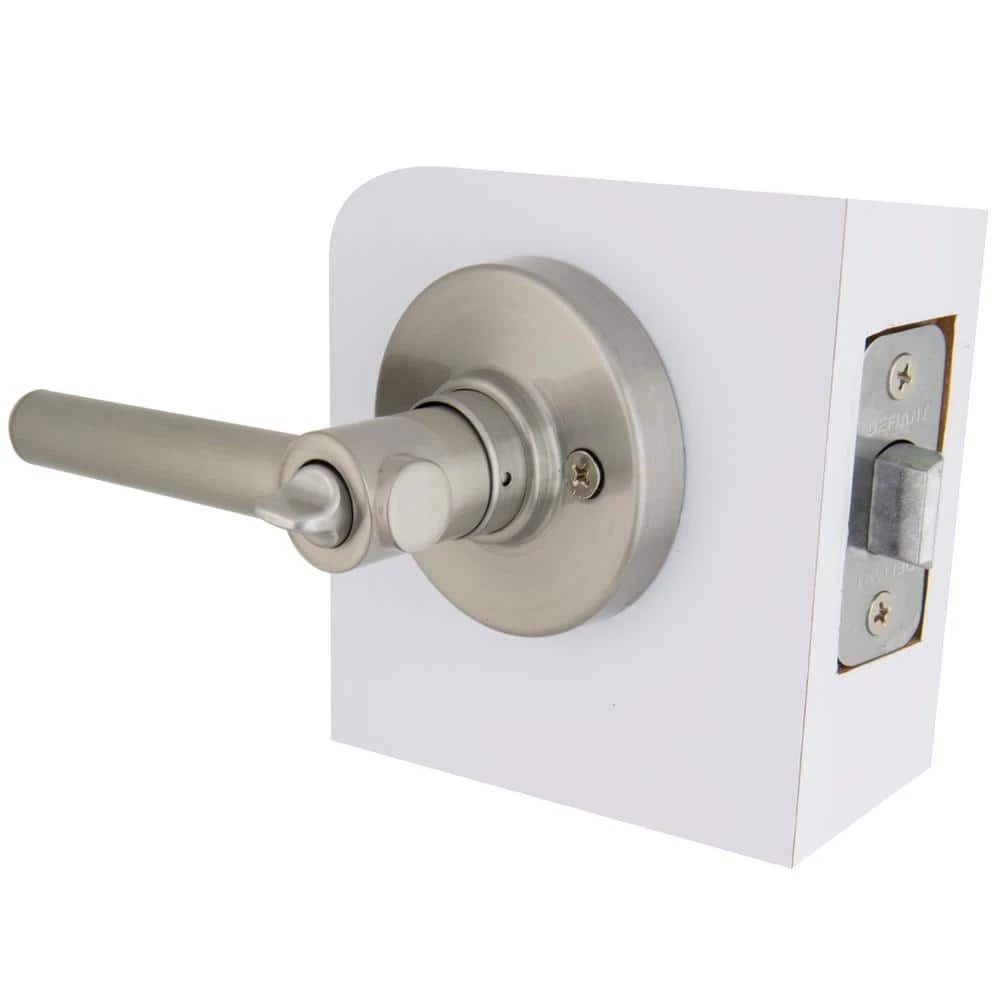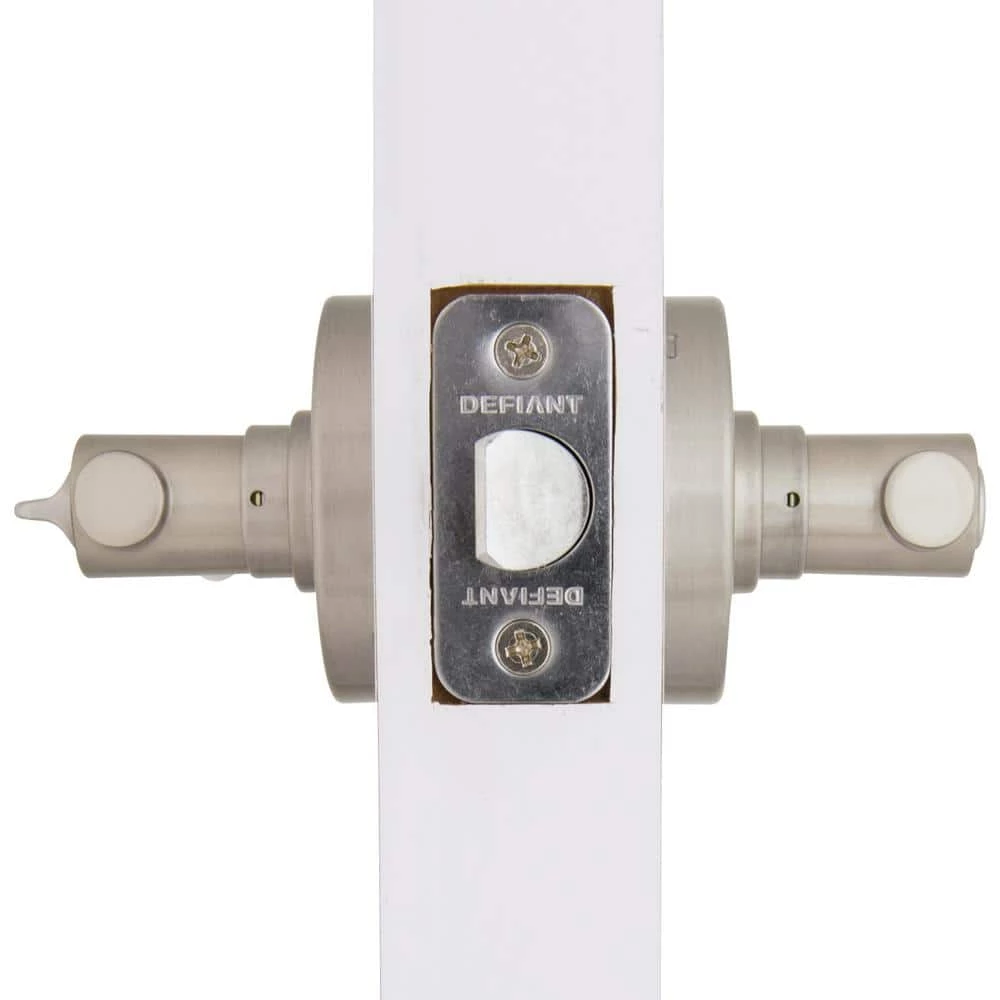 Affordably outfit interior doors with this lockable lever set from Defiant. This privacy Lever easily mounts to doors 1-3/8 in. to 1-3/4 in. thick with the included hardware. A new design feature is the 70 mm Rose plate that easily covers paint rings left from previous door hardware installations. Perfect for bedroom and bathroom doors beyond which privacy is sometimes desired. Provided with this set is an adjustable backset and interchangeable faceplates for drive-in and traditional installations. This sturdy lever nicely coordinates with other fixtures in your home for a cohesive look. A lifetime warranty ensures that this device will withstand frequent use.