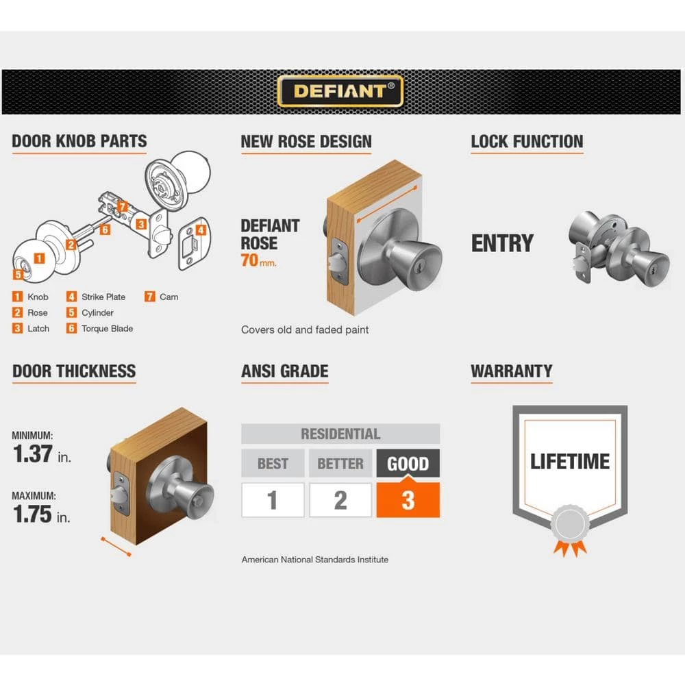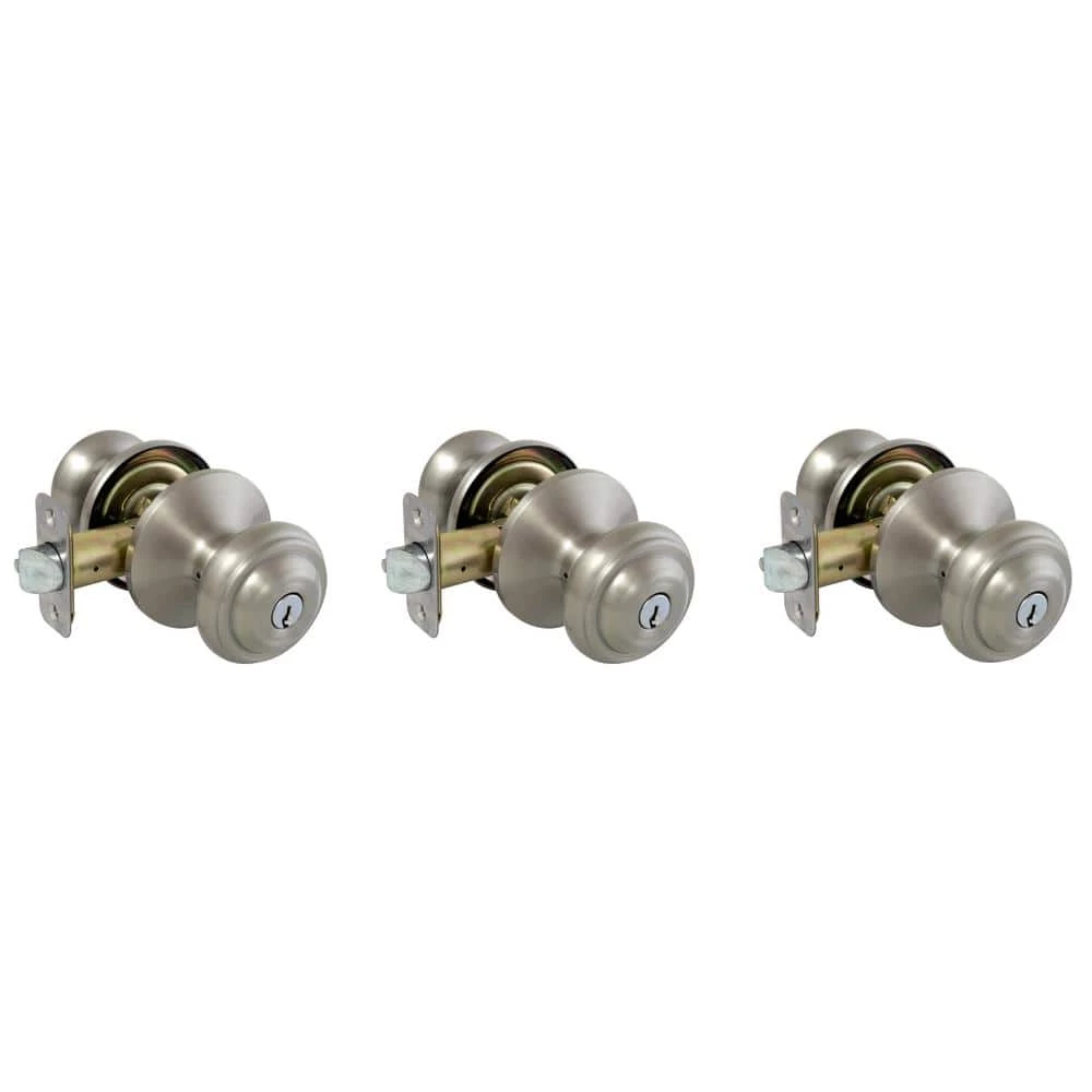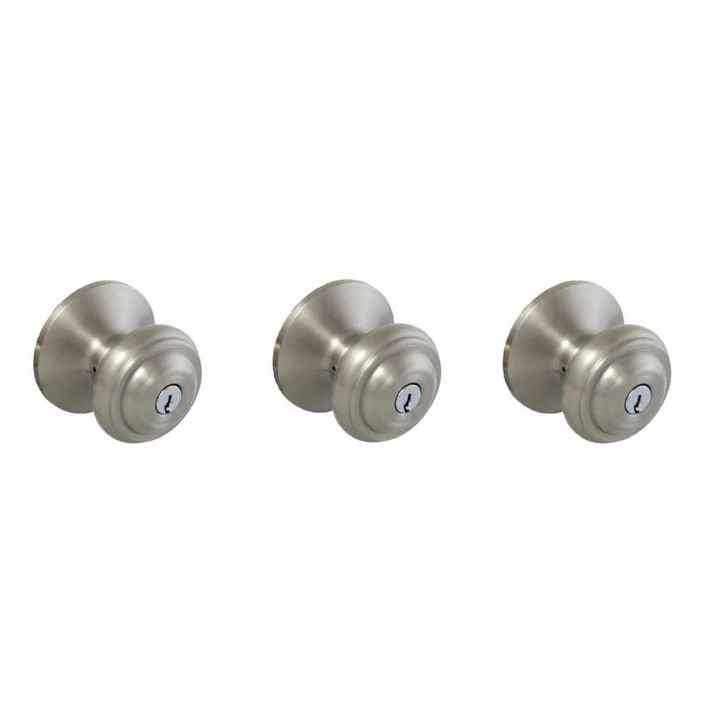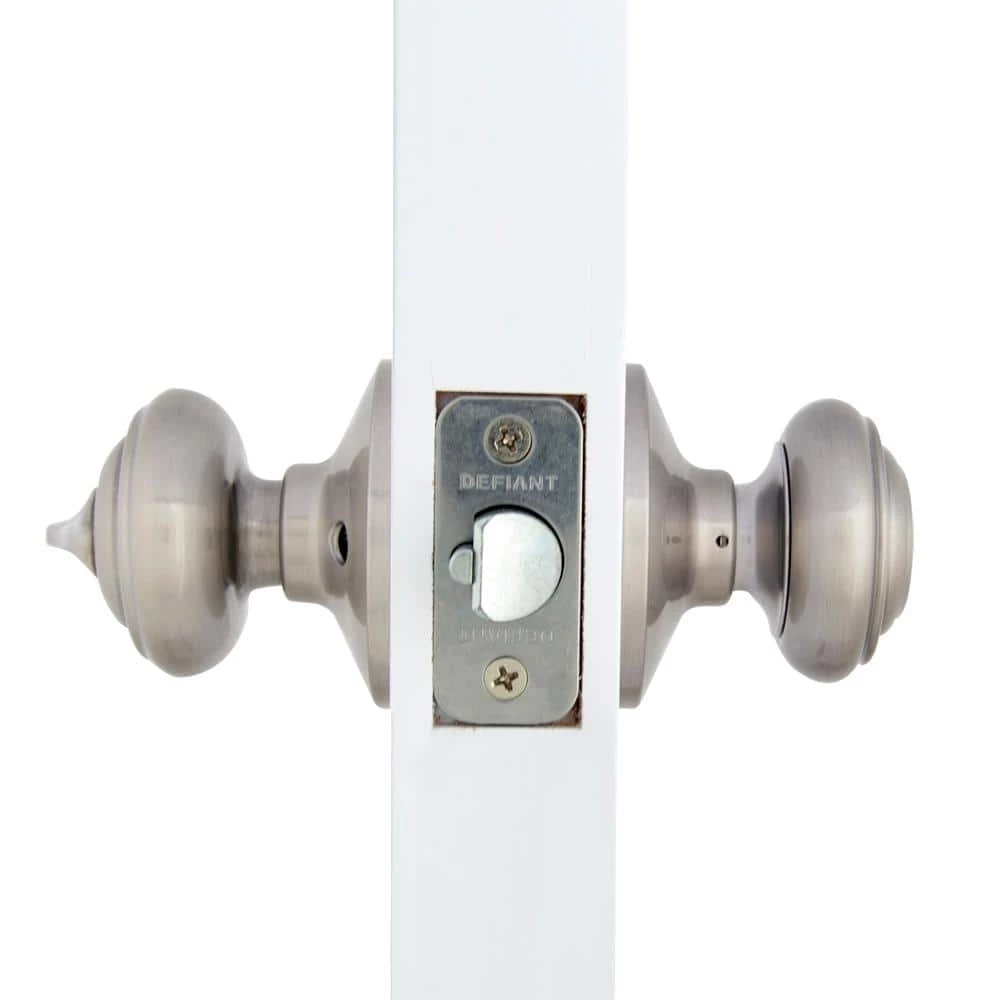 The Defiant Madrid keyed entry door knob 3-Pack features an Easy Fit backset latch with a radius faceplate that can be converted into a drive in configuration. These units are backed by a limited lifetime guarantee and protected with a powder-coated finish that will provide years of durability. The Madrid keyed entry door knobs can also be re-keyed to match your existing KW1 keyway. For further information about this process, please speak with your local Home Depot hardware associate.
