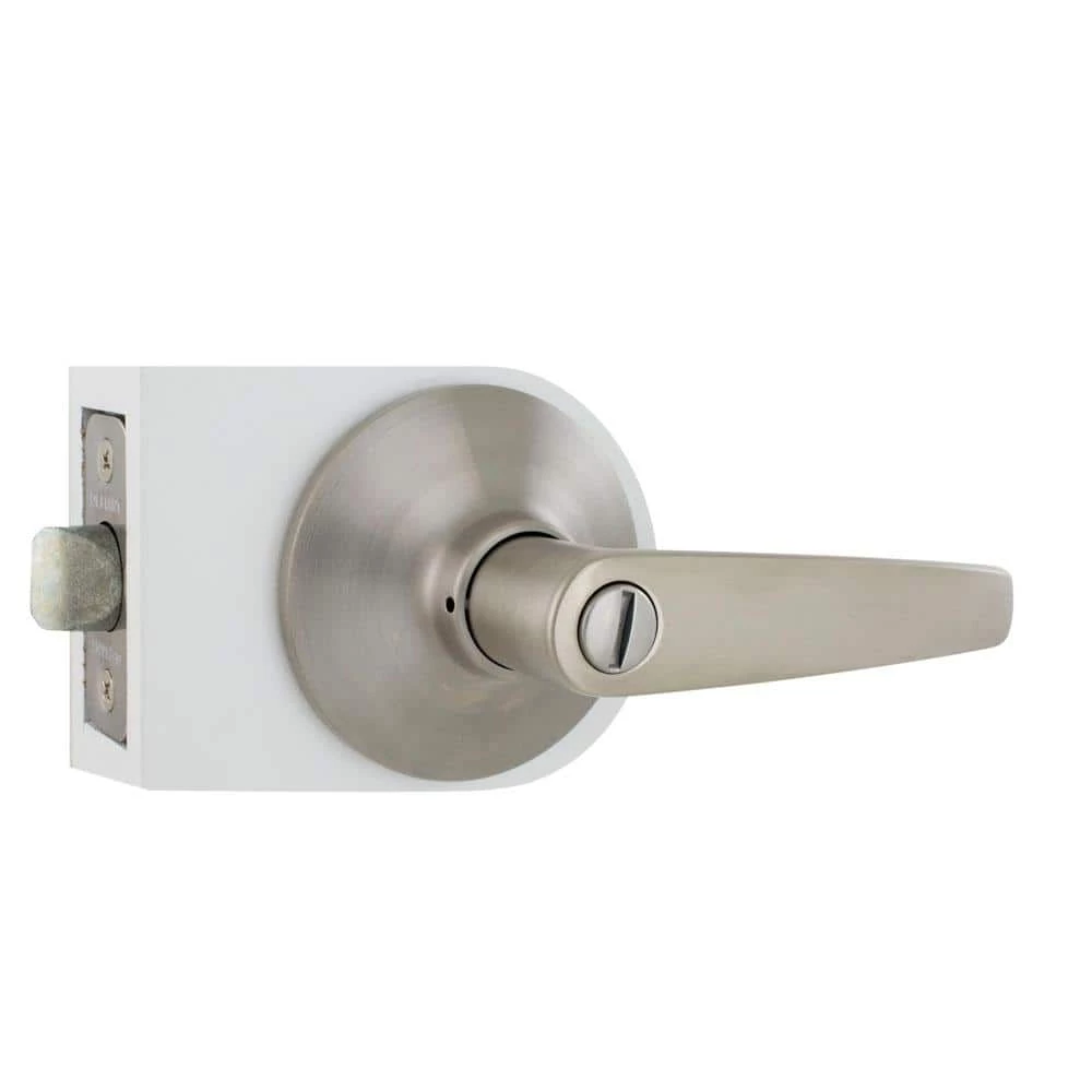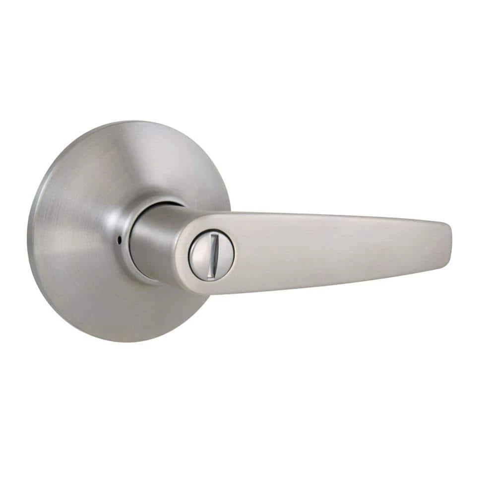 Affordably outfit interior doors with this lockable lever set from Defiant. The Olympic Privacy Lever easily mounts to doors 1-3/8 in. to 1-3/4 in. thick with the included hardware. A new design feature is the 70 mm rose plate that easily covers paint rings left from previous door hardware installations. Perfect for bedroom and bathroom doors beyond which privacy is sometimes desired. Provided with this set is an adjustable backset and interchangeable faceplates for drive-in and traditional installations. This sturdy lever nicely coordinates with other fixtures in your home for a cohesive look. A lifetime warranty ensures that this device will withstand frequent use.