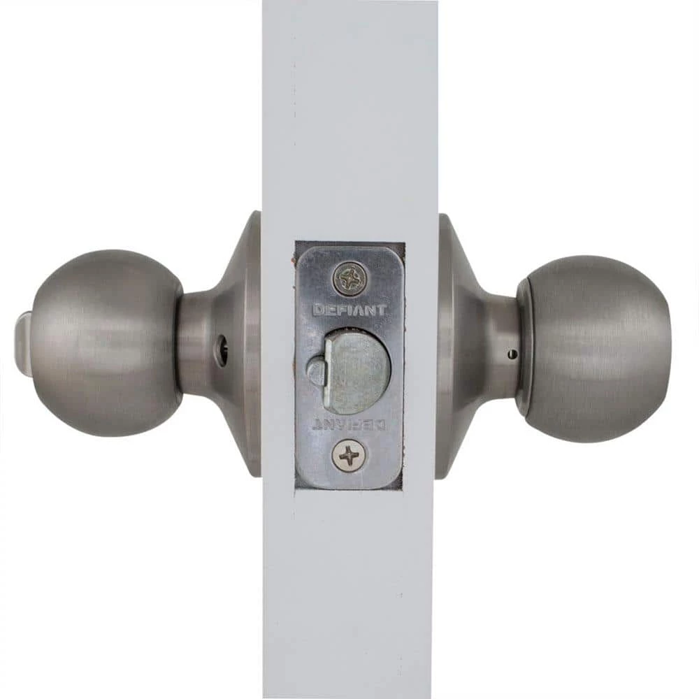 Affordably outfit exterior doors with this Keyed entry knob set from Defiant. The Saturn Keyed Entry knob has been newly designed with a 70 mm Rose Plate that easily mounts to doors 1-3/8 in. to 1-3/4 in. thick with the included hardware. The new design provides coverage of paint rings left from previous installations of door hardware. It is perfect for entry, basement or garage doors beyond which security is needed. It features adjustable backsets and interchangeable faceplates for drive-in and traditional installations. The sturdy knob nicely coordinates with other fixtures in your home for a cohesive look. A lifetime warranty ensures that this device will withstand frequent use.