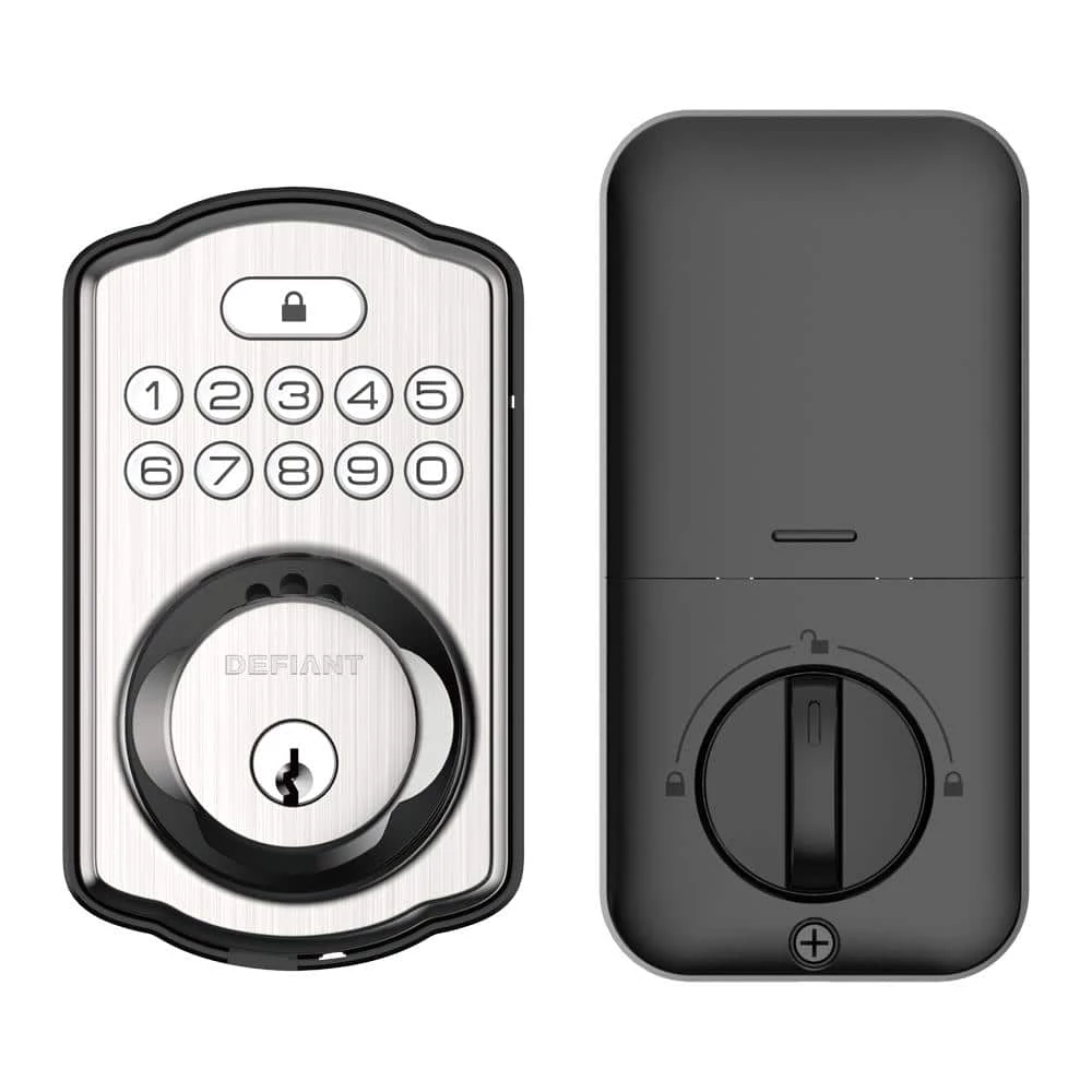 Adding security for your family and property is easy with this Satin Nickel Castle Electronic Keypad Deadbolt from Defiant. Keyless entry technology brings peace of mind without the worry of losing keys. User-friendly features include ease of installation, simple operation and customizable programming.