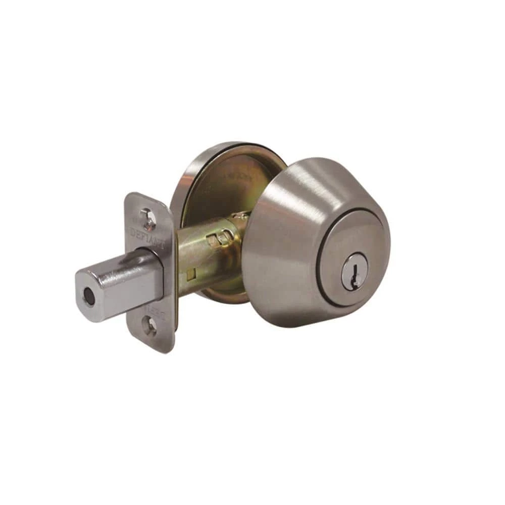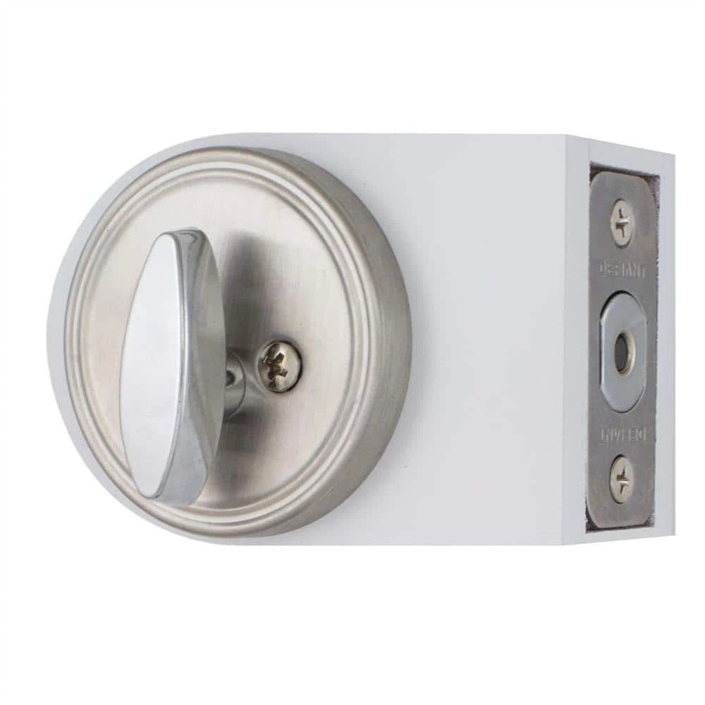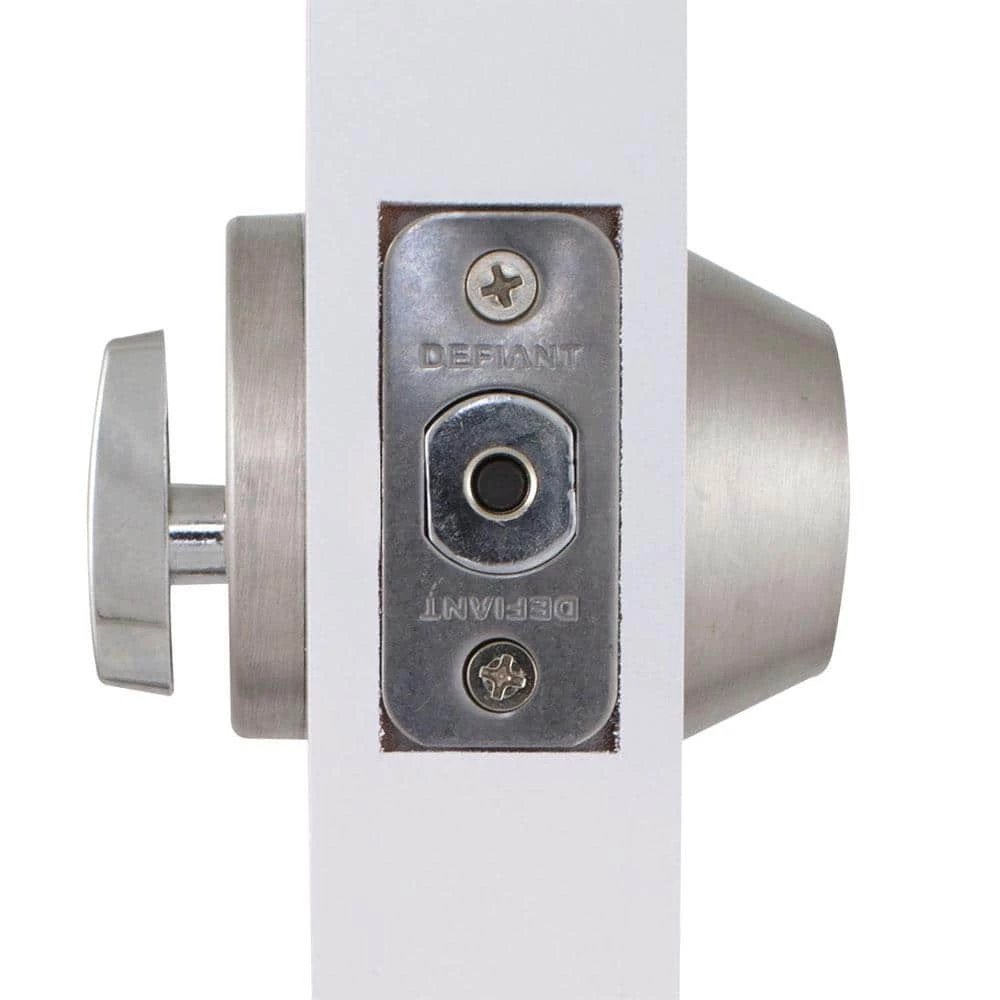 Featuring a lifetime guarantee, Defiant’s Single Cylinder Stainless Steel Deadbolt offers protection against drilling, sawing, picking and prying. The latch features a radius faceplate which can be converted to drive-in option. The design makes installation easy with only a Phillips screwdriver needed.