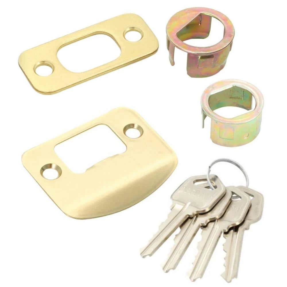 Defiant Springfield Single Cylinder Mushroom Handle Set Deadbolt lock features a polished brass finish, radius latch with an adjustable backset and optional drive-in feature. It can be re-keyed to match your existing KW1 key. It is also backed by a lifetime guarantee and protected with a powder-coated finish that will provide years of durability.