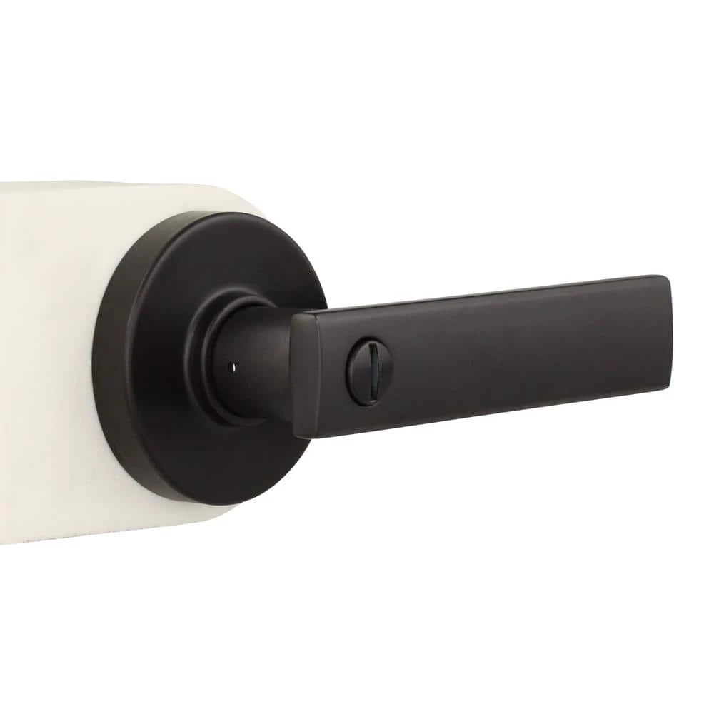Affordably outfit latching interior doors with this lockable lever set from Defiant. The Privacy lever easily mounts to doors 1-3/8 in. to 1 3/4 in. thick with the included hardware, perfect for bedroom and bathroom doors where privacy is desired. It features EZ Fit backset and interchangeable faceplates for drive-in and traditional installations. The sturdy door lever nicely coordinates with other plumbing and lighting fixtures in your home for a cohesive look. A limited lifetime warranty ensures that this device will withstand frequent use with the finish intact.