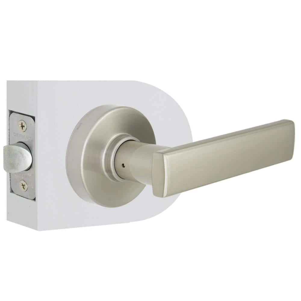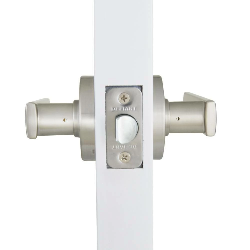 Affordably outfit latching interior doors with this lever set from Defiant. This Passage lever easily mounts to doors 1-3/8 in. to 1-3/4 in. T with the included hardware, perfect for residential doorways where locking is not needed. It features EZ Fit backset and interchangeable faceplates for drive-in and traditional installations. The sturdy door lever nicely coordinates with other plumbing and lighting fixtures in your home for a cohesive look. A limited lifetime guarantee ensures the durability of this device for long-term use.